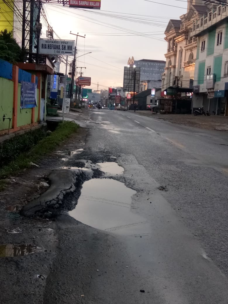 Bahkan jalan-jalan yang belum lama diperbaiki tak luput dari kerusakan. Kondisi ini terlihat di sejumlah jalan protokol Kota Pringsewu Kecamatan Pringsewu.