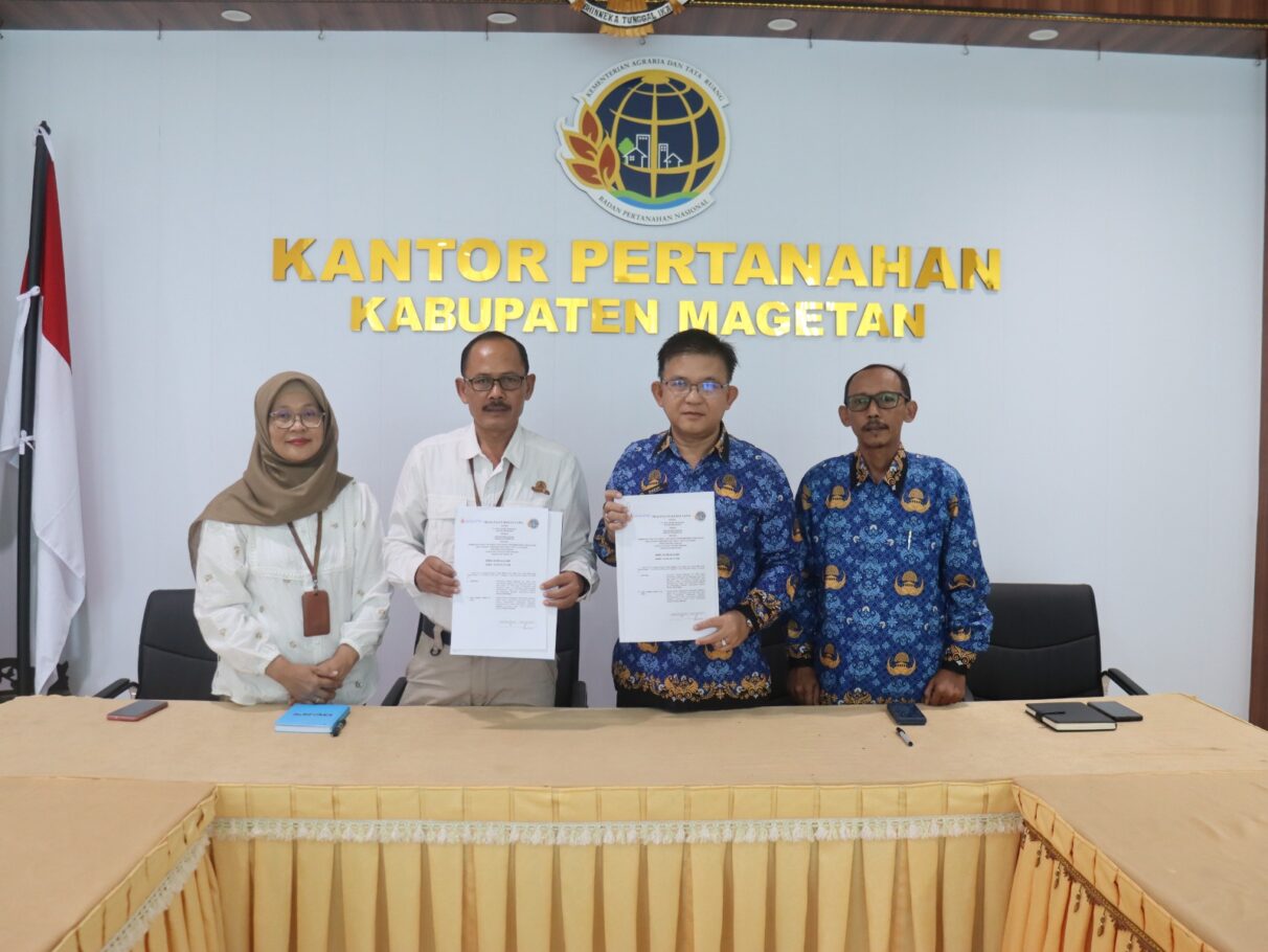“Melalui kerja sama ini, diharapkan sertipikat tanah tidak hanya memberikan kepastian hukum atas kepemilikan tanah, tetapi juga dapat memberikan nilai tambah ekonomi bagi masyarakat, sehingga mampu mendorong peningkatan kesejahteraan dan kemandirian ekonomi di Kabupaten Magetan,” tegasnya.