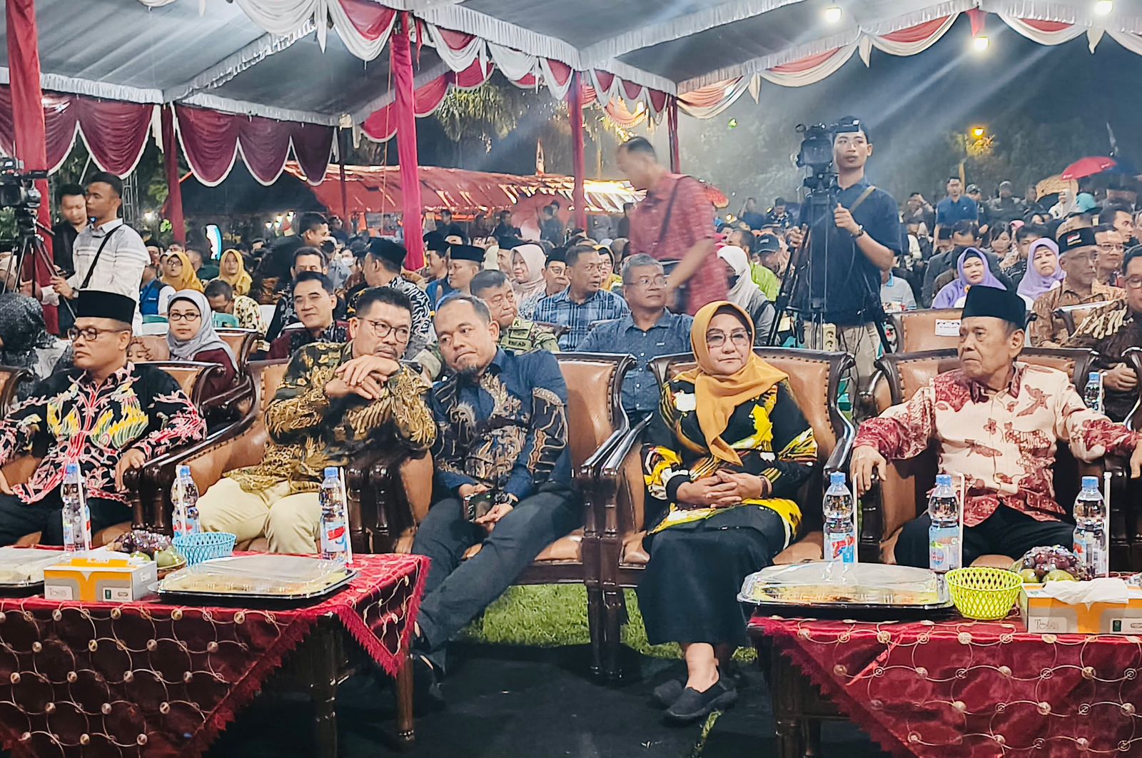 Pagelaran wayang kulit semalam suntuk yang menampilkan Dalang Ki Bayu Aji, putra Dalang Legendaris Ki Anom Suroto, menjadi hiburan utama bagi ribuan warga yang tumpah ruah memadati alun-alun.