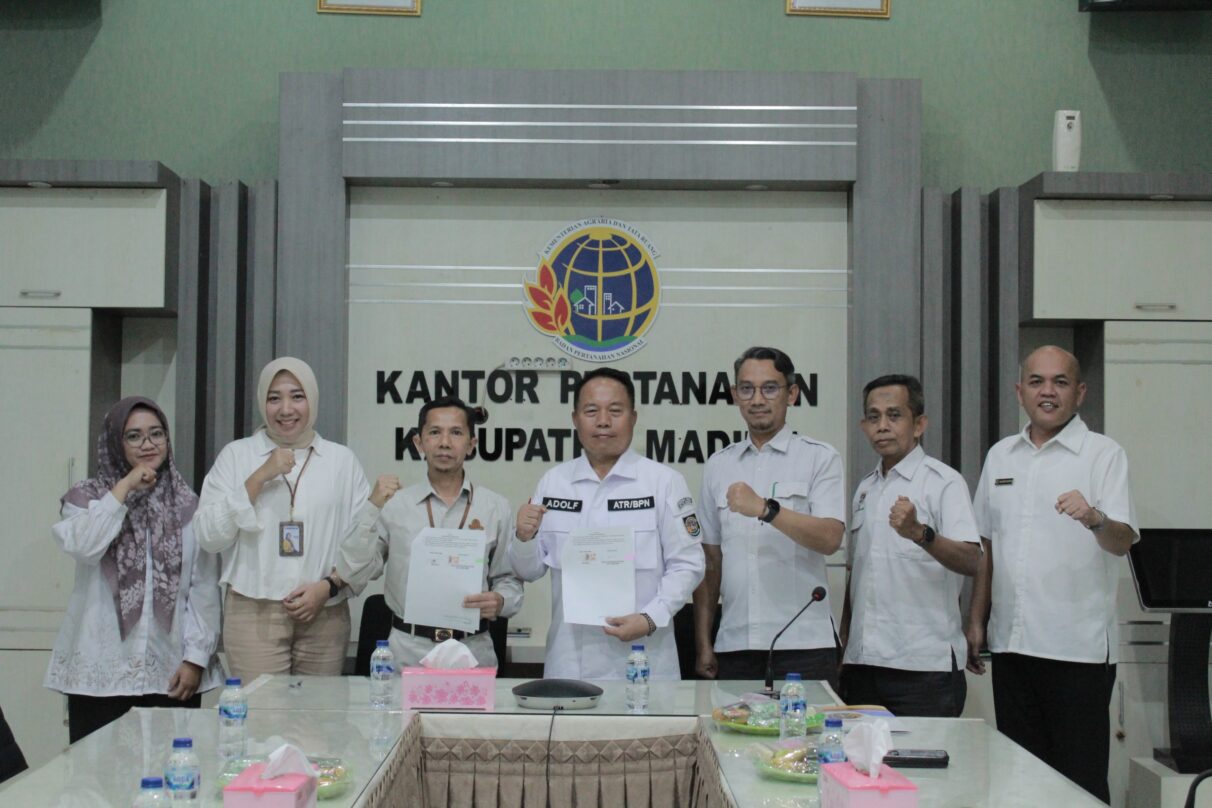 “Kerja sama ini bertujuan untuk memberikan kemudahan akses pembiayaan kepada masyarakat penerima sertipikat program pertanahan, sehingga sertipikat yang dimiliki tidak hanya memberikan kepastian hukum atas tanah, tetapi juga memiliki nilai tambah dalam meningkatkan taraf ekonomi,” jelas Kepala Kantah Kabupaten Madiun, Adolf Severlianus, Rabu (15/4/2026)
