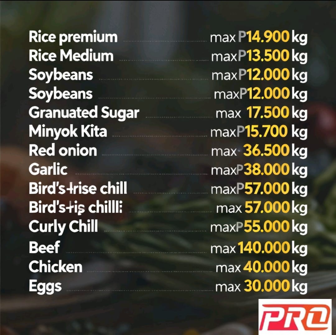 Daftar harga komoditas bahan pokok dengan batas harga maksimal