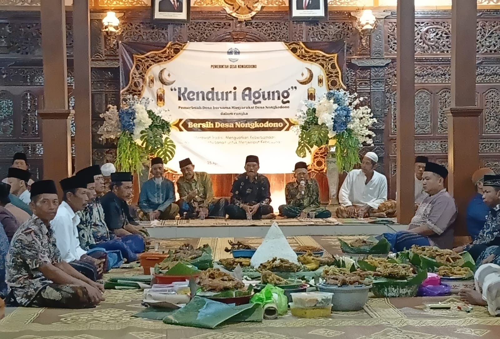 Kepala Desa Nongkodono, Jemadi, menyampaikan bahwa kenduri agung merupakan bagian dari tradisi bersih desa yang tidak hanya dimaknai sebagai ritual, tetapi juga sebagai sarana mempererat tali persaudaraan.