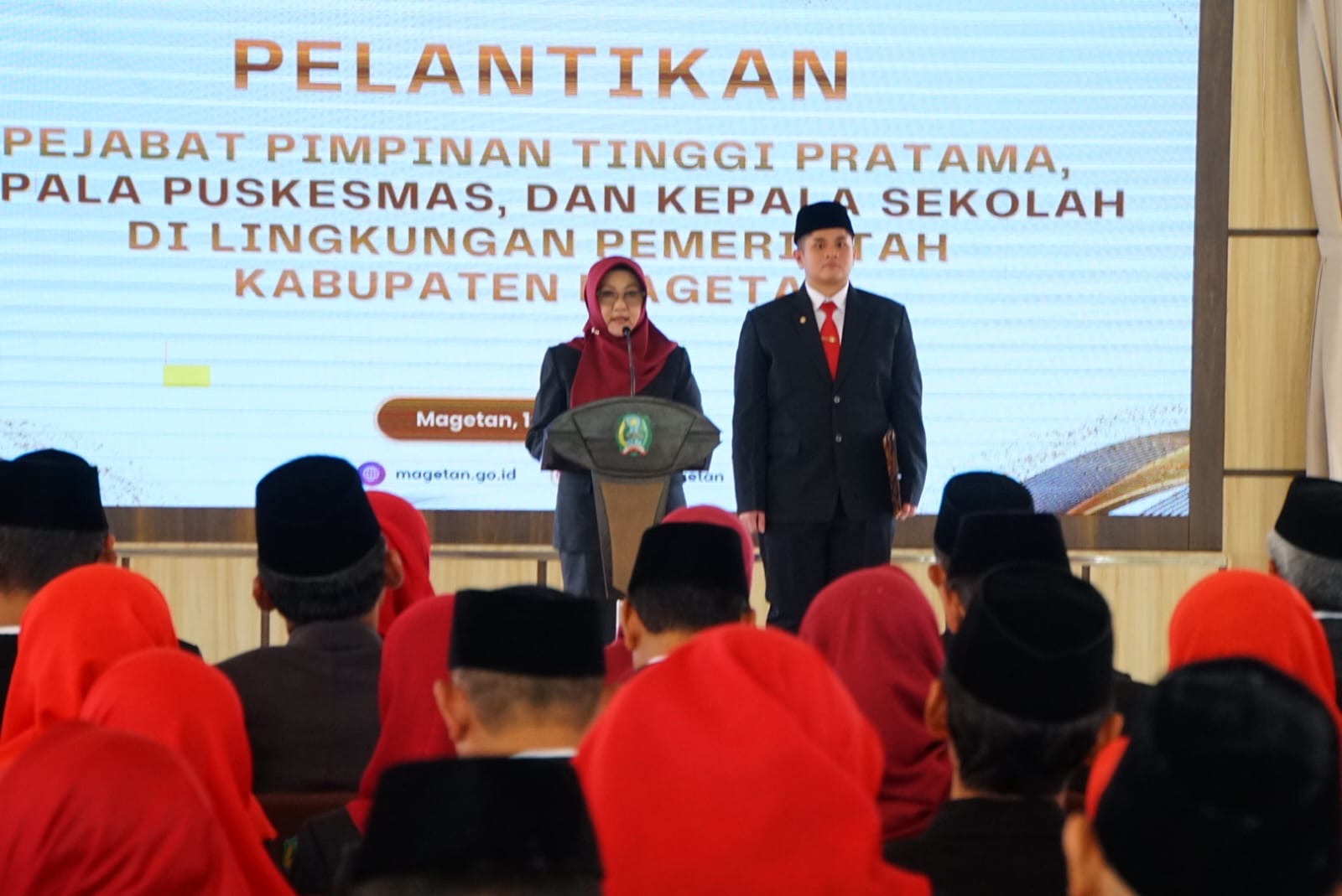 ProKontra, Magetan– Pemerintah Kabupaten Magetan melaksanakan pelantikan sejumlah pejabat penting pada Selasa (10/3/2026) di Pendopo Surya Graha Magetan. Kegiatan ini berdasarkan Keputusan Bupati Magetan Nomor 800.1.3.3/49/KEPT/403.203/2026 tentang Pengangkatan Jabatan Pimpinan Tinggi Pratama, yang dikeluarkan pada bulan Maret 2026, Selasa (10/2/2026)