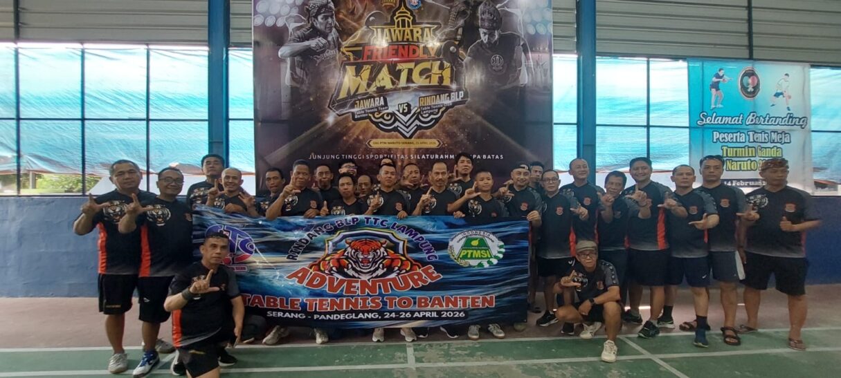 ProKontra, Bandarlampung — Dengan mengusung tema Adventure Road to Banten, RINDANG BLP TTC Lampung melaksanakan ajang silaturrahim dan latih tanding tenis meja ke Serang dan Pandeglang Banten dari tanggal 24 sampai dengan 26 Mei 2026 dengan menghadirkan 34 atlit dan official di bawah komando Hendy selaku ketua Tim.