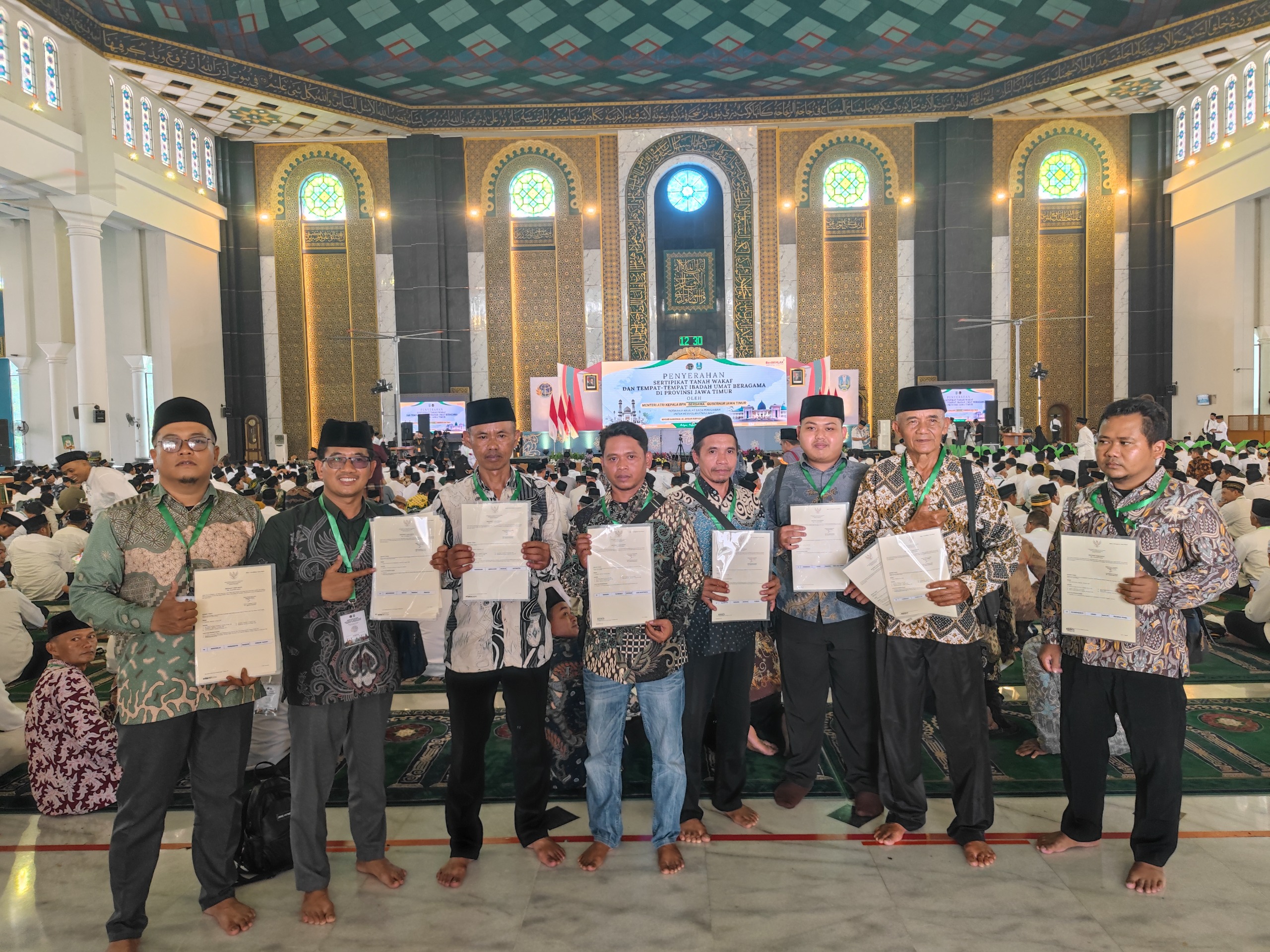 Sertipikat wakaf tersebut diserahkan secara simbolis oleh Menteri ATR/BPN bersama Gubernur Provinsi Jawa Timur sebagai bentuk komitmen pemerintah dalam memberikan kepastian hukum atas tanah wakaf dan tempat ibadah.