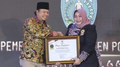 Plt Bupati Ponorogo saat menerima Penghargaan “Menuju Informatif” dalam Ajang KI Awards 2025 ProKontra, Ponorogo…